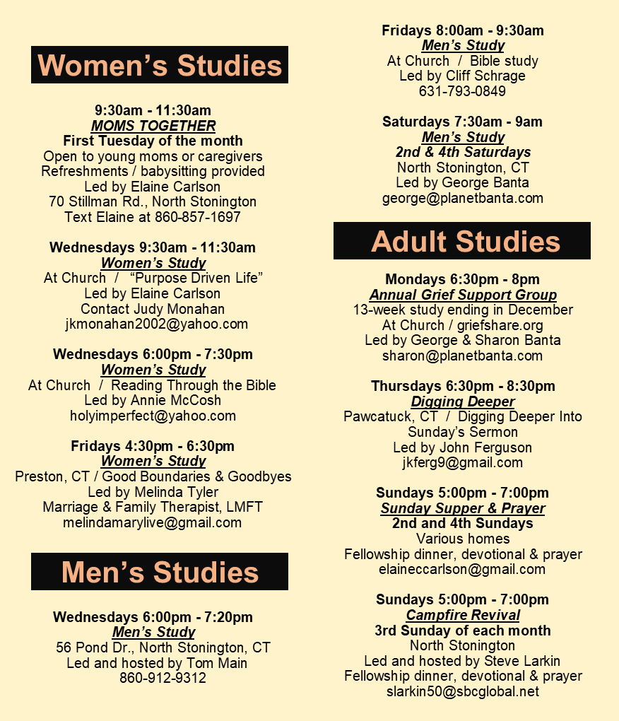 Kid’s Kloset provides clothing for children who are in foster care. Infant through teen sized clothing is needed. There is a donation bin in the fellowship hall by the back door. Contact Nanette Williams at 860-857-3531.