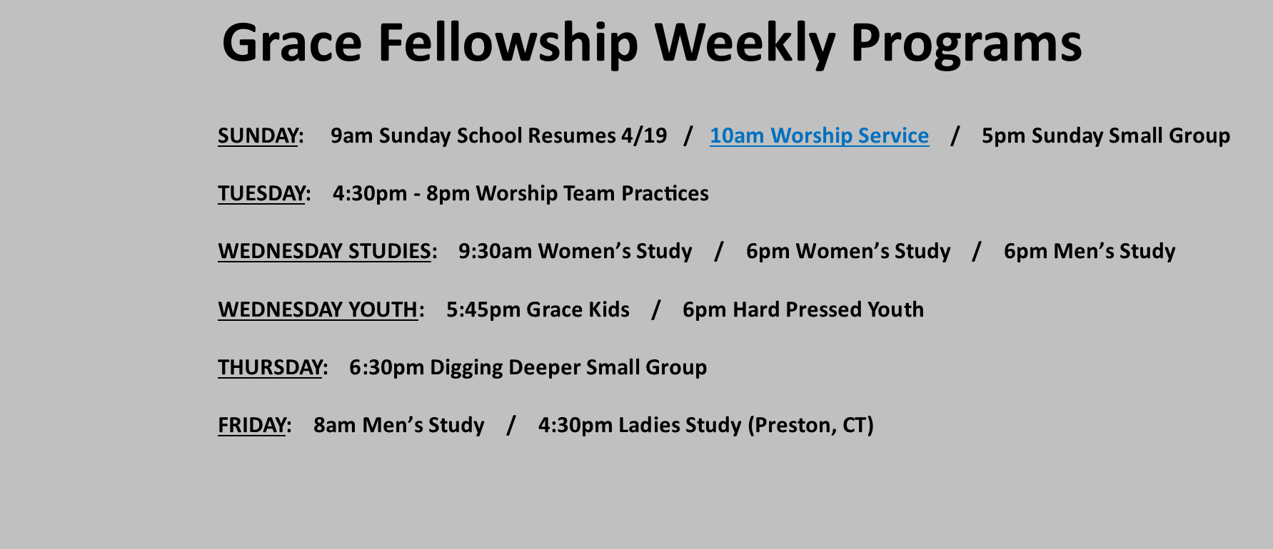 Women created with a God-given desire for relationships, community, and “connected-ness” will enjoy a variety of occasions to gather for study and fun at Grace Fellowship.